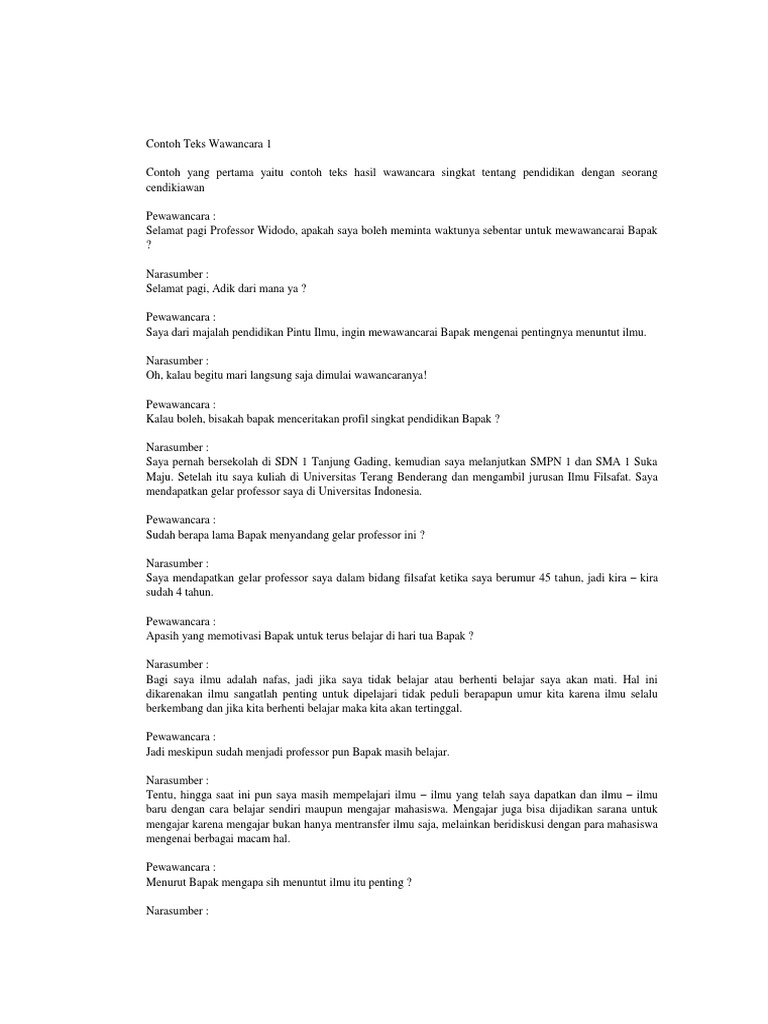 Contoh Teks Wawancara Dengan Narasumber Tentang Pendidikan - Aneka Macam Contoh
