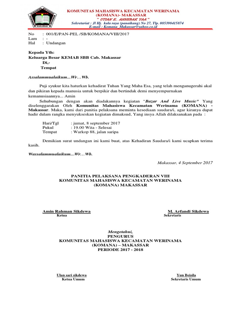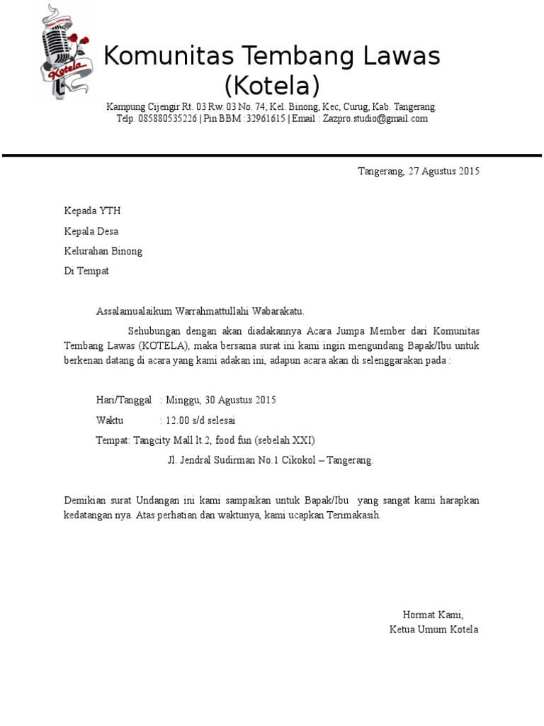 Contoh Surat Undangan Komunitas – Gambaran