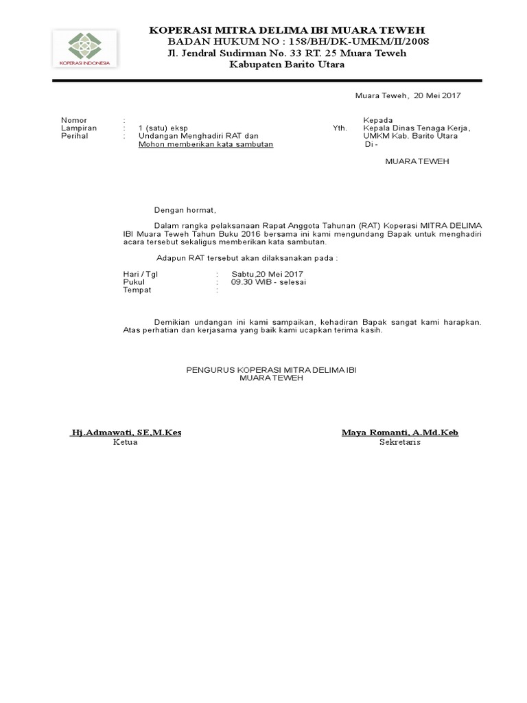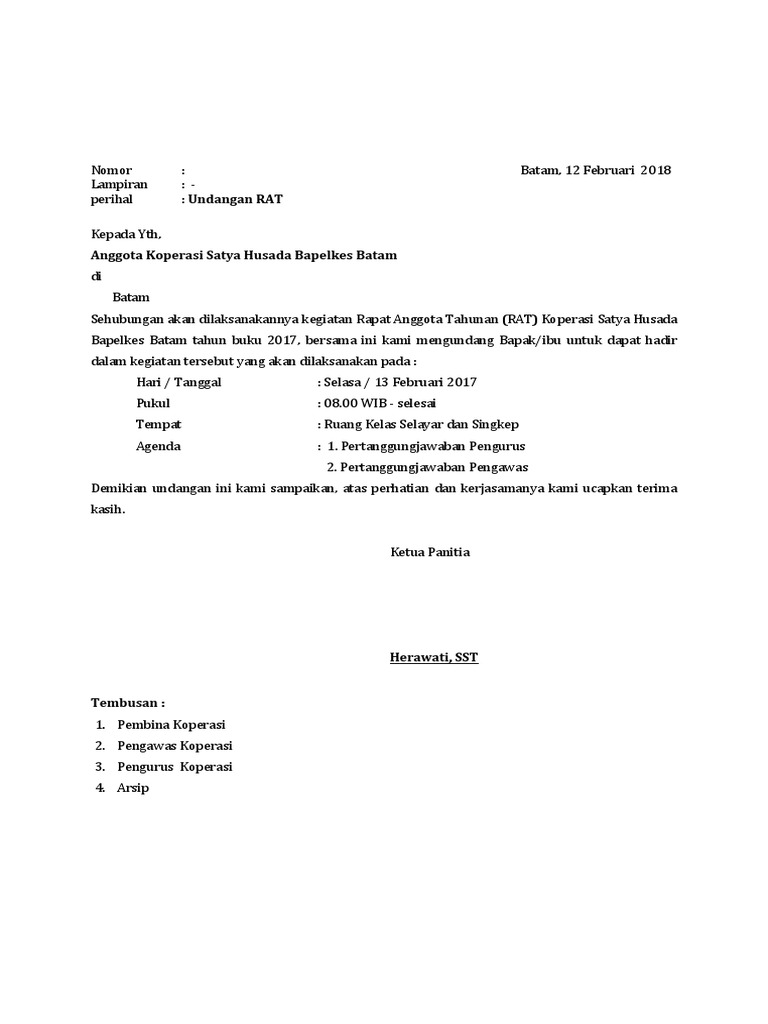Contoh Surat Undangan Rapat Akhir Tahun Koperasi Berbagi - Cute766