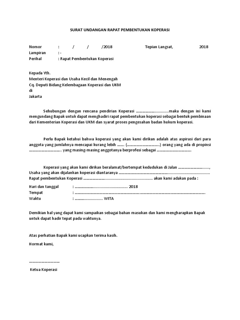 Contoh Surat Undangan Rapat Pembentukan Koperasi - Seputar Bentuk