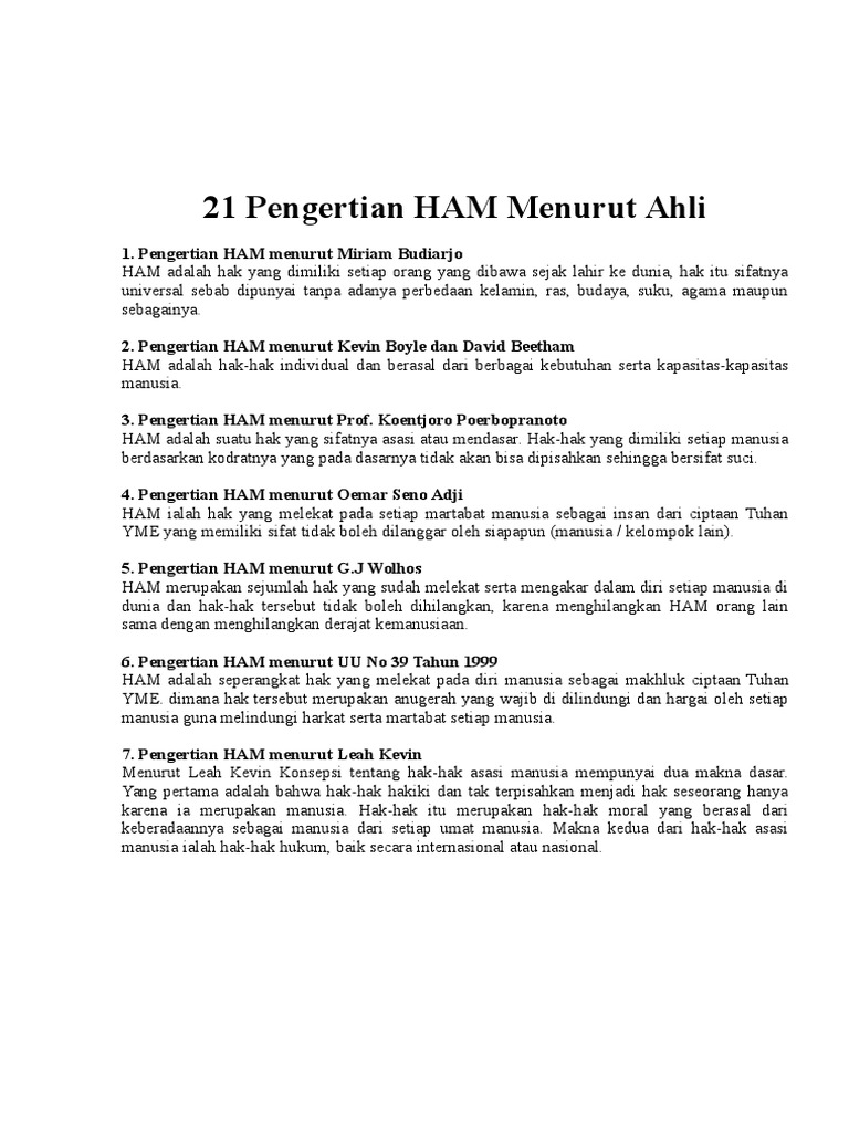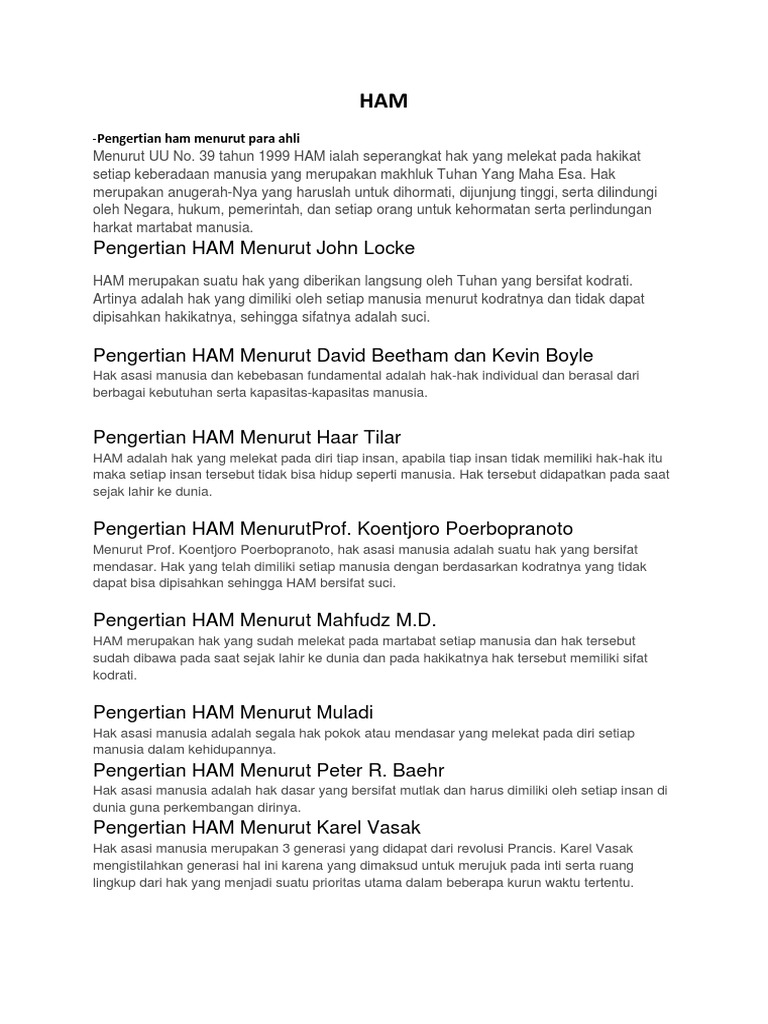 Pengertian Ham Menurut Para Ahli