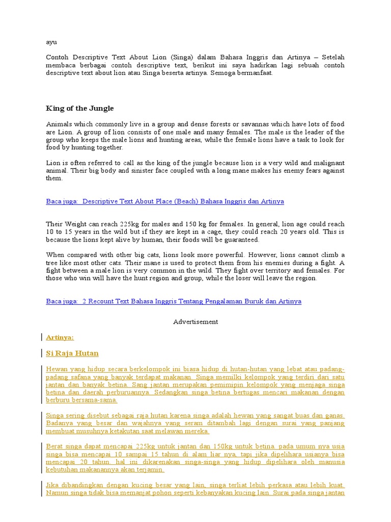 Contoh Report Text Singkat Tentang Singa Dan Terjemahannya