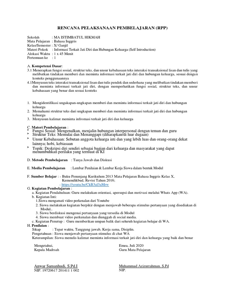 rpp 1 lembar bhs inggris
