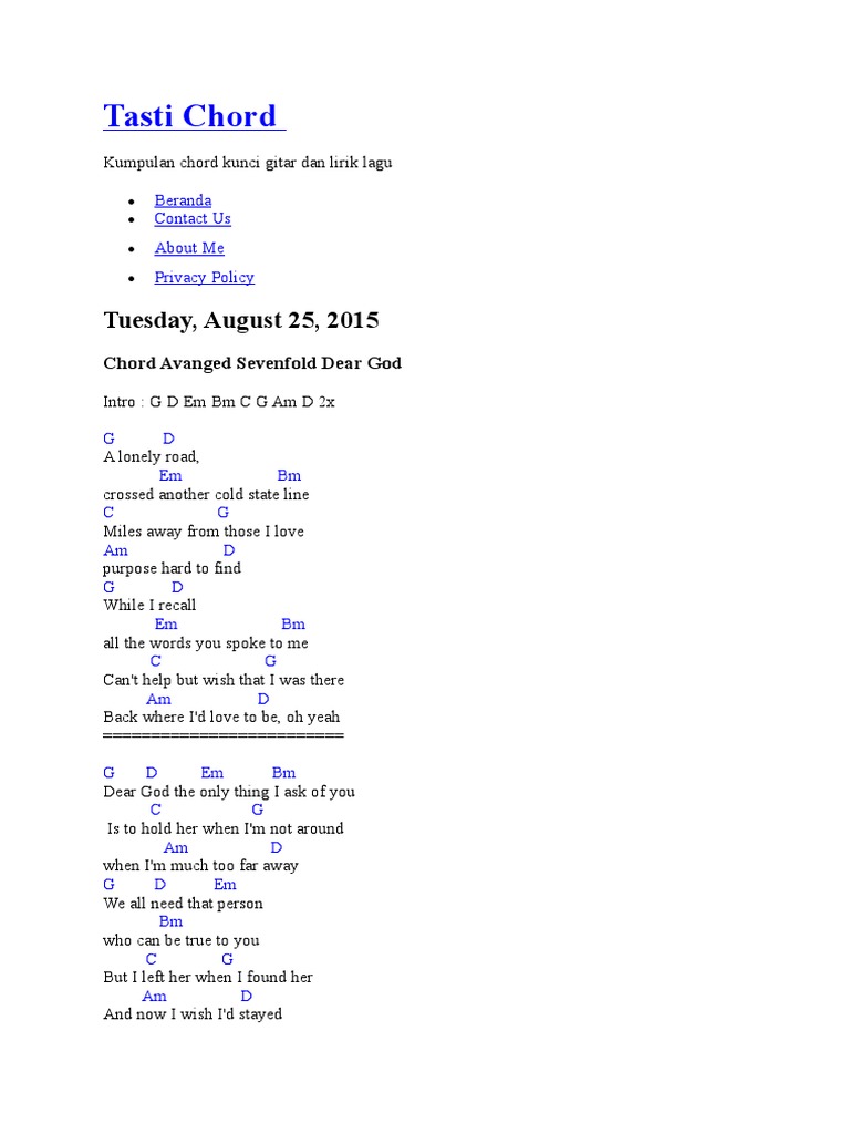 Tasti Chord Daer God | Internet