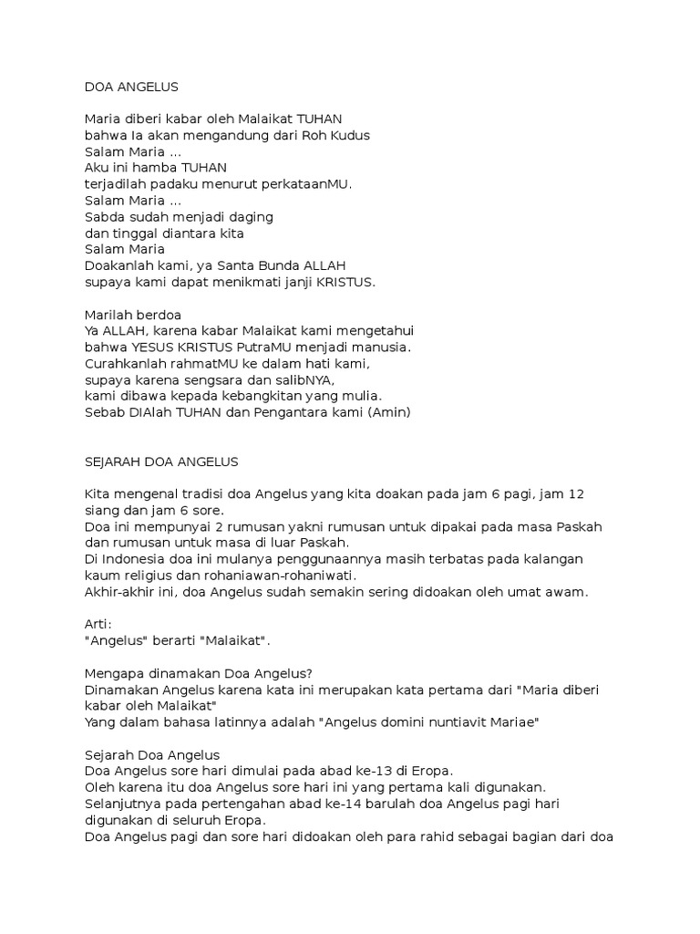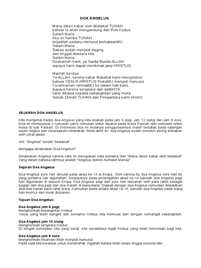 Doa Malaikat Tuhan Dalam 4 Bahasa (Indonesia, Jawa, Inggris …