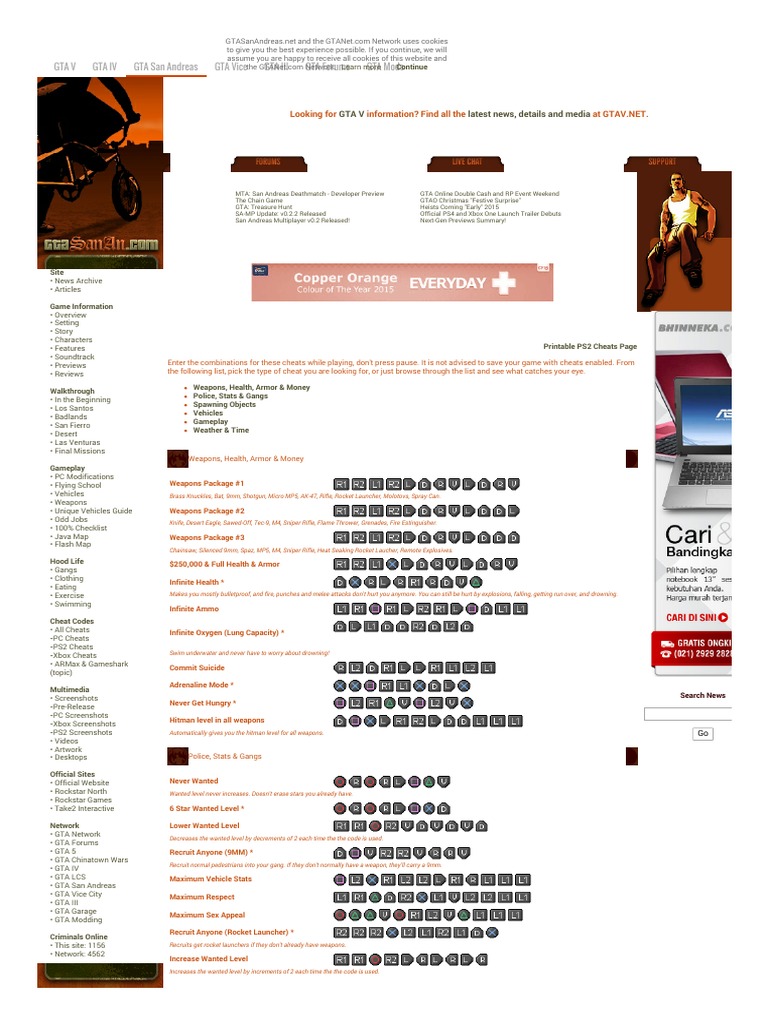Ron Apk: GTA San Andreas Cheats PS2 apk Update