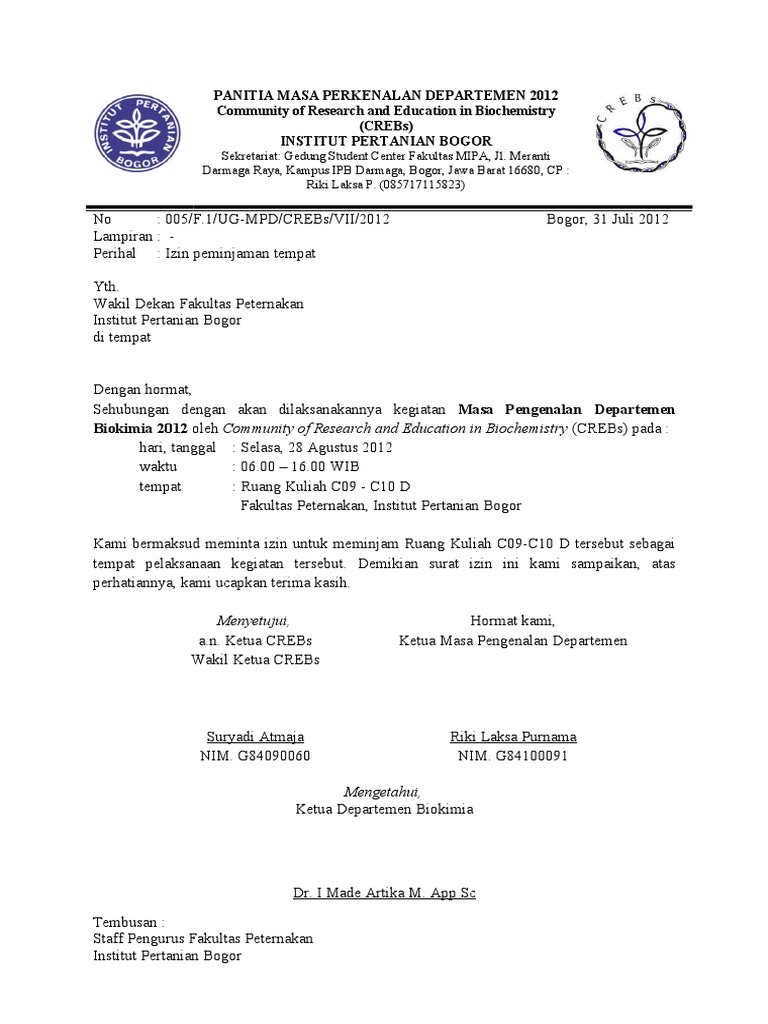 Contoh Surat Peminjaman Tempat Dan Perlengkapan - Cute766