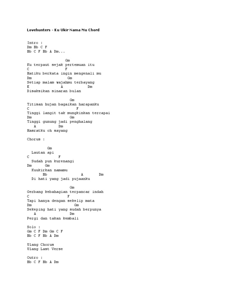Chord Gitar Ku Ukir Nama Mu Lovehunters