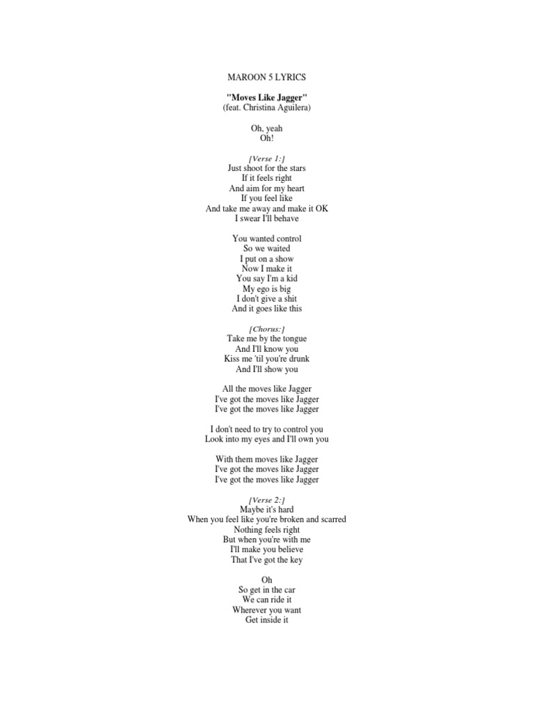 LYRICS: Lirik Lagu MOVES LIKE JAGGER - Maroon 5 feat. Christina …