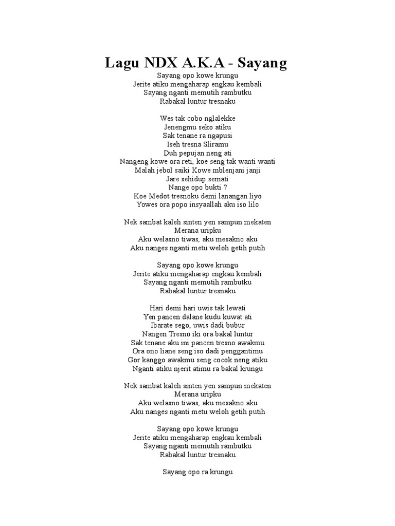 lirik lagu ndx a.k.a: lirik lagu ndx a.k.a - sayang