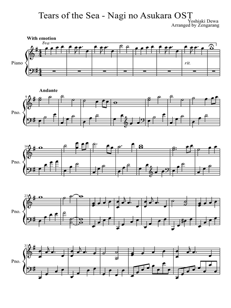 Cry for the Moon-Nagi-Asu A Lull in the Sea OST Free Piano Sheet …