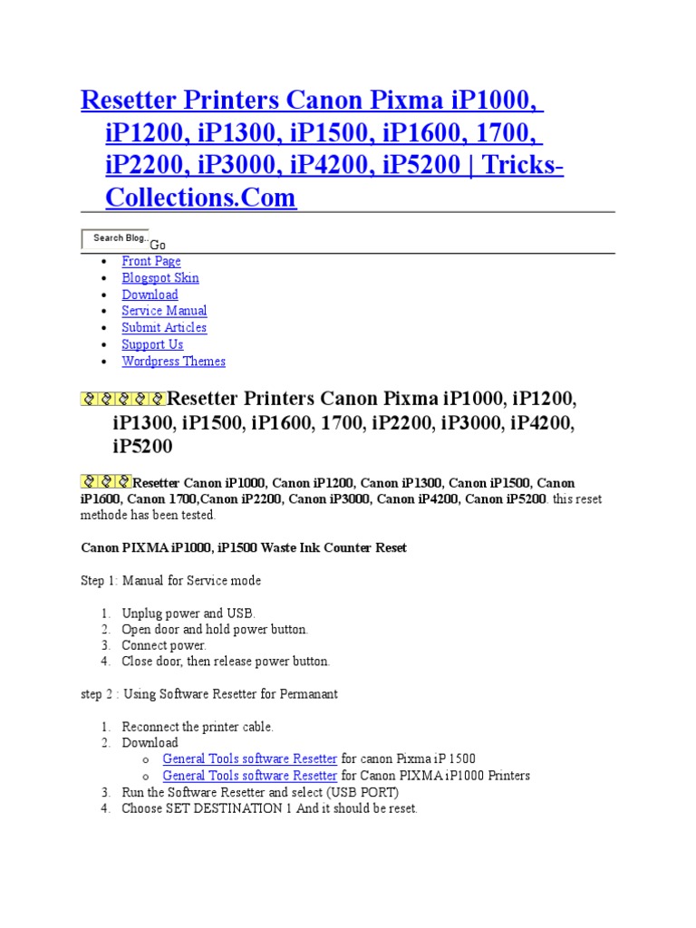 Resetter Printers Canon Pixma IP1000 | Printing | Media Technology
