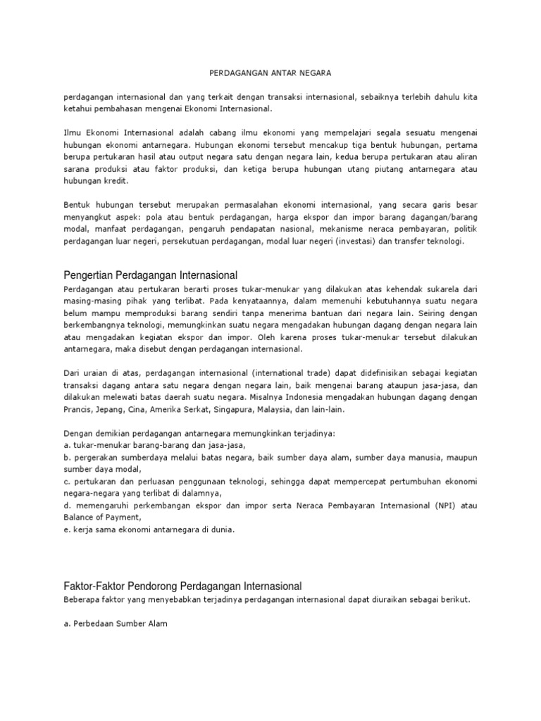 Sebutkan Faktor Pendorong Terjadinya Perdagangan Antar Negara – Kebahasaan
