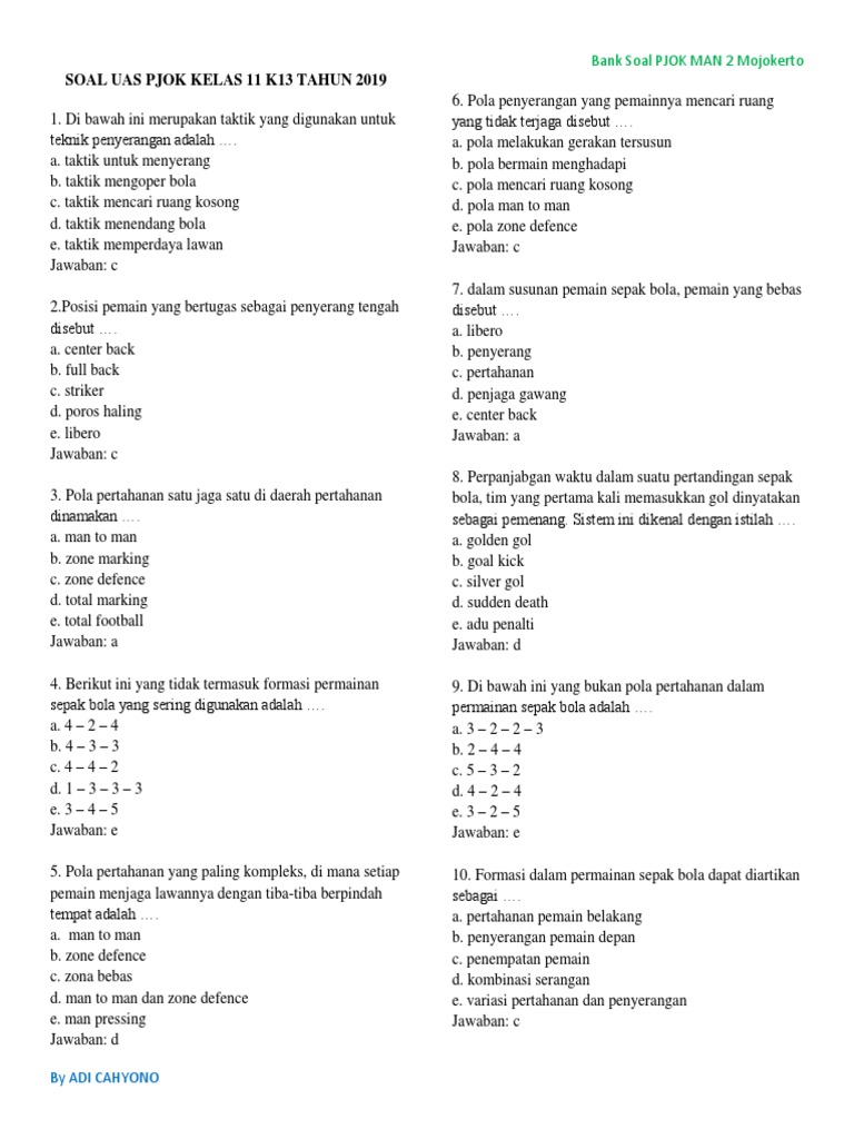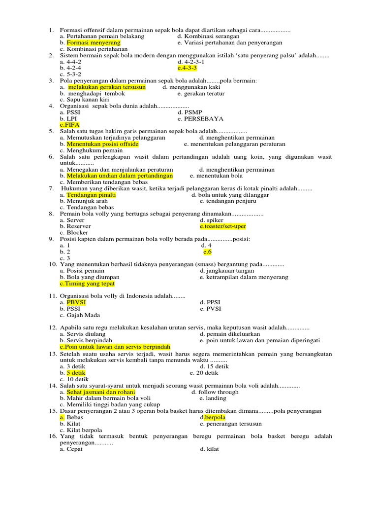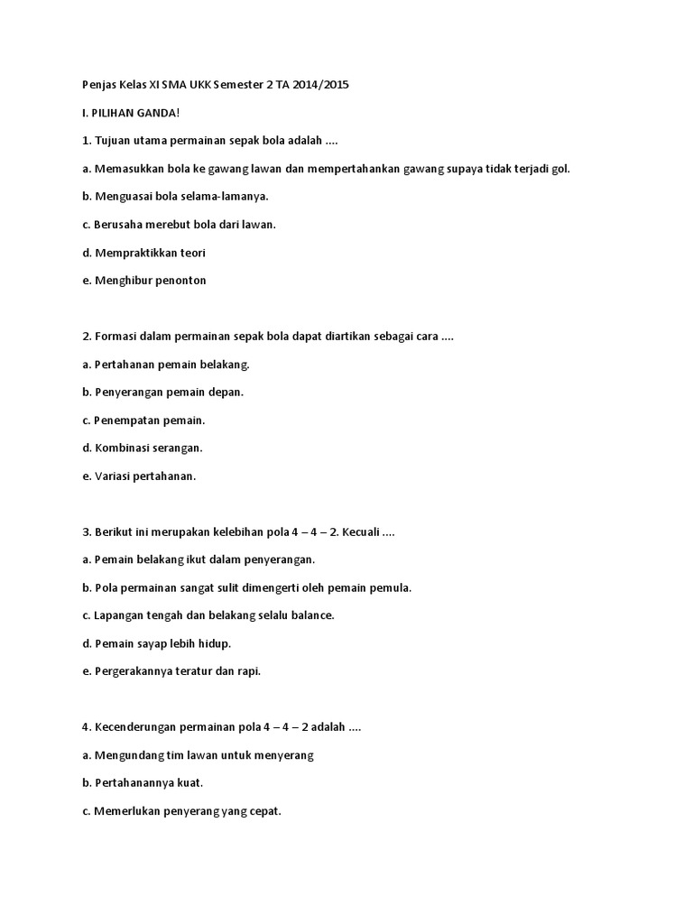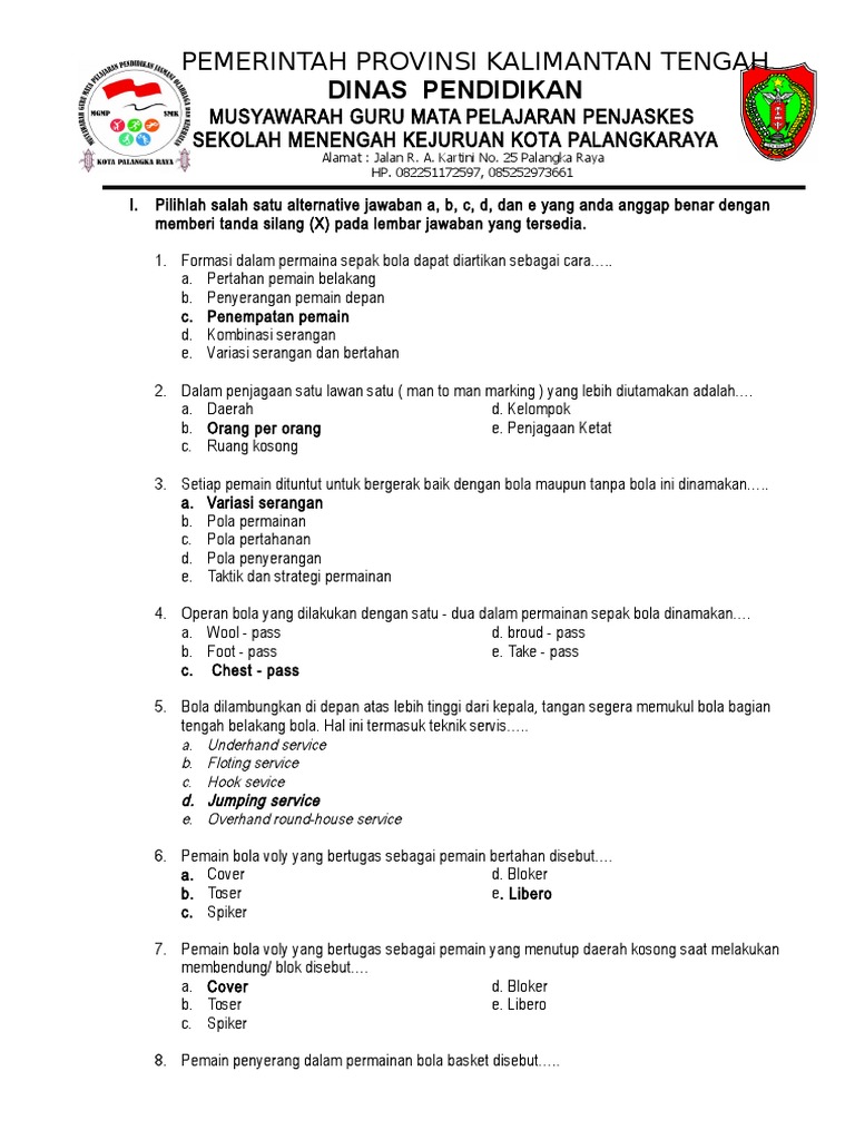 DOC) Contoh Soal UAS Penjaskes kelas 3 SMK | Annisa Kusuma Wardhani - Academia.edu