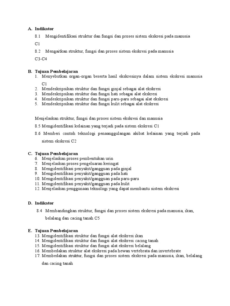 Indikator Dan Tujuan Ekskresi