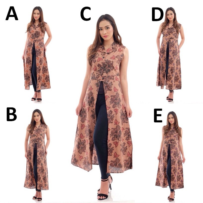 LVB014 Rompi Panjang Batik Katun Long vest Cardigan Blazer Wanita | Shopee Indonesia