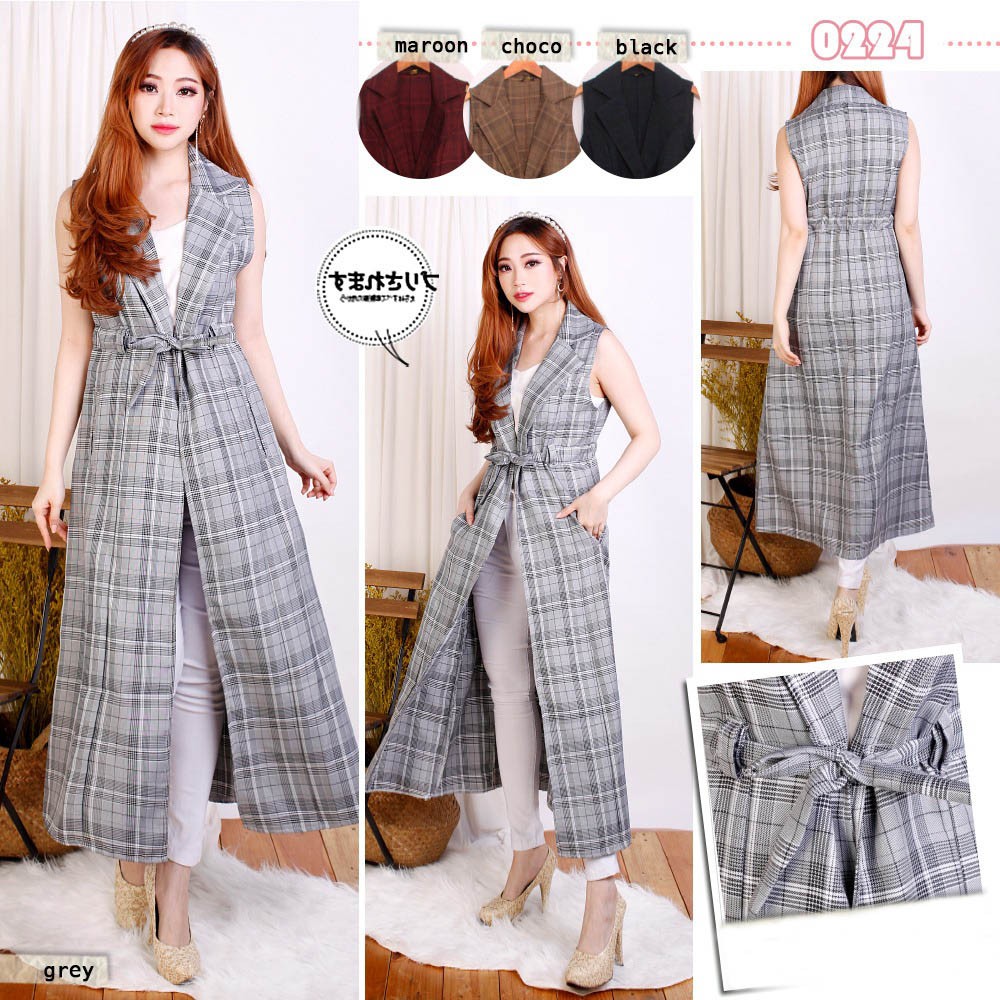Eliza Long Vest Outer / Rompi Panjang Wanita Motif Kotak Kekinian | Shopee Indonesia