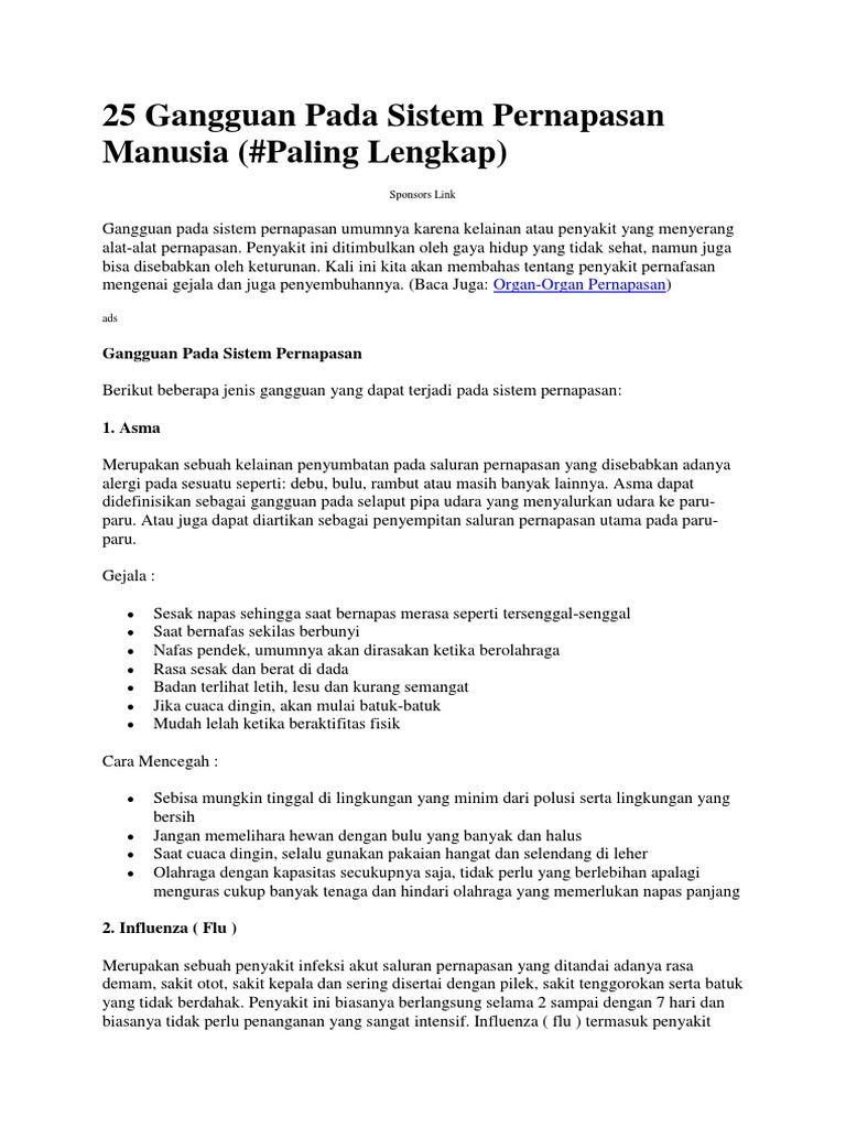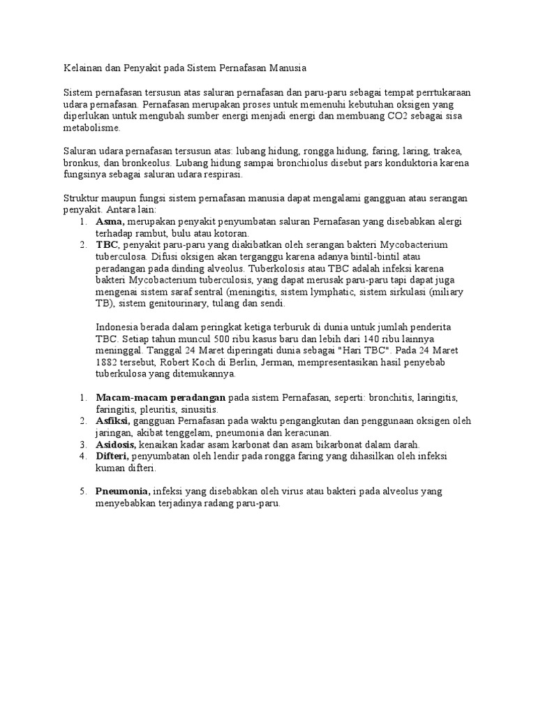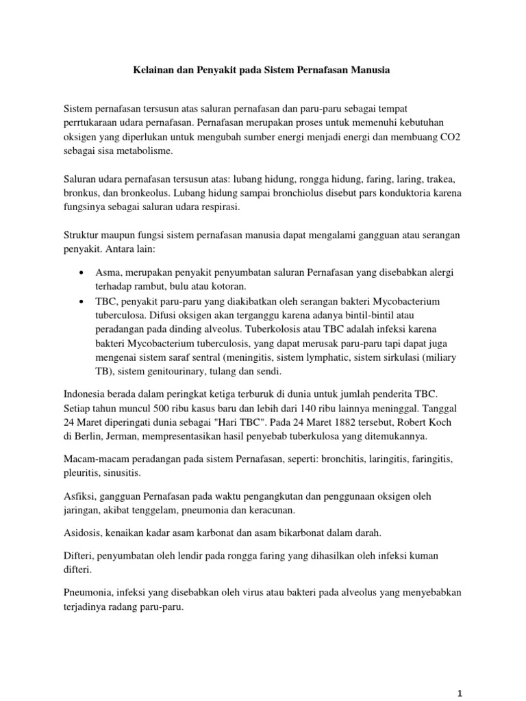 DOC) 20 Penyakit pada Sistem Pernapasan Manusia | Taufik Abdul …