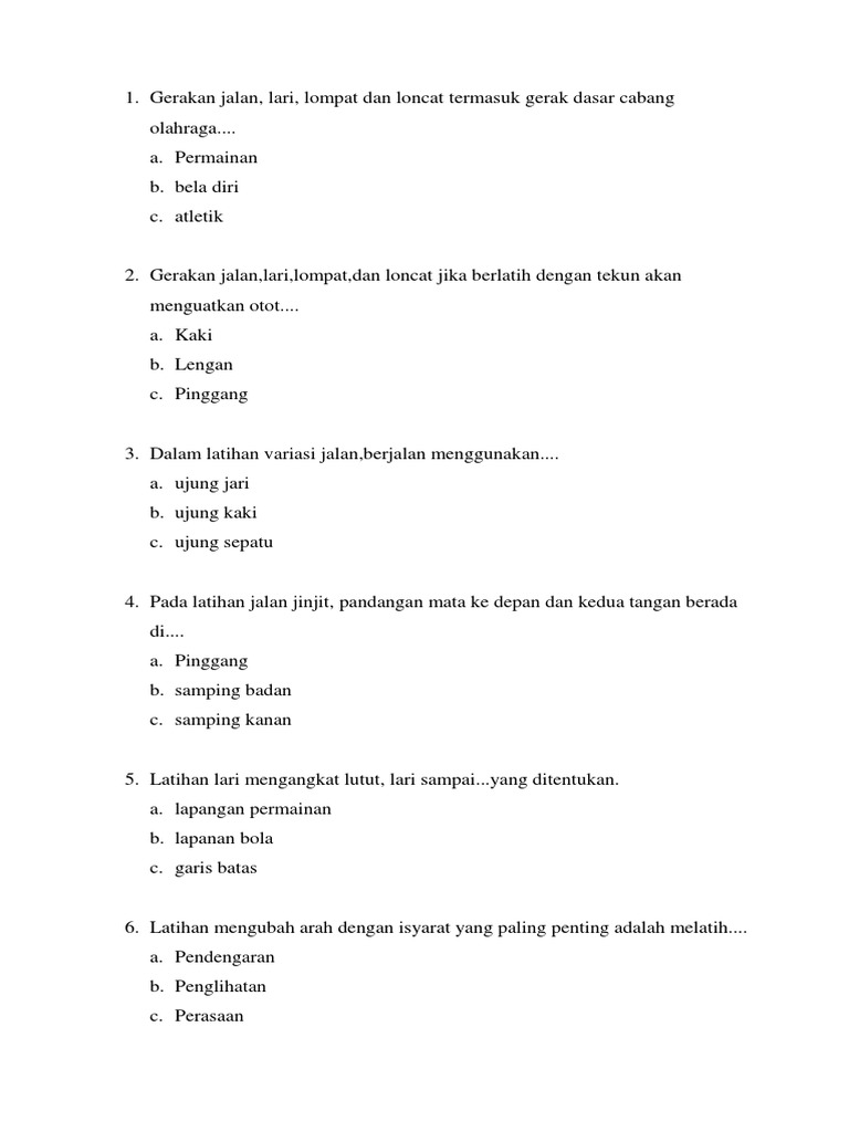 1. Jalan, lari, dan lompat adalah gerakan dasar cabang …..A. Renang B. Senam C. AtletikD. - Brainly.co.id