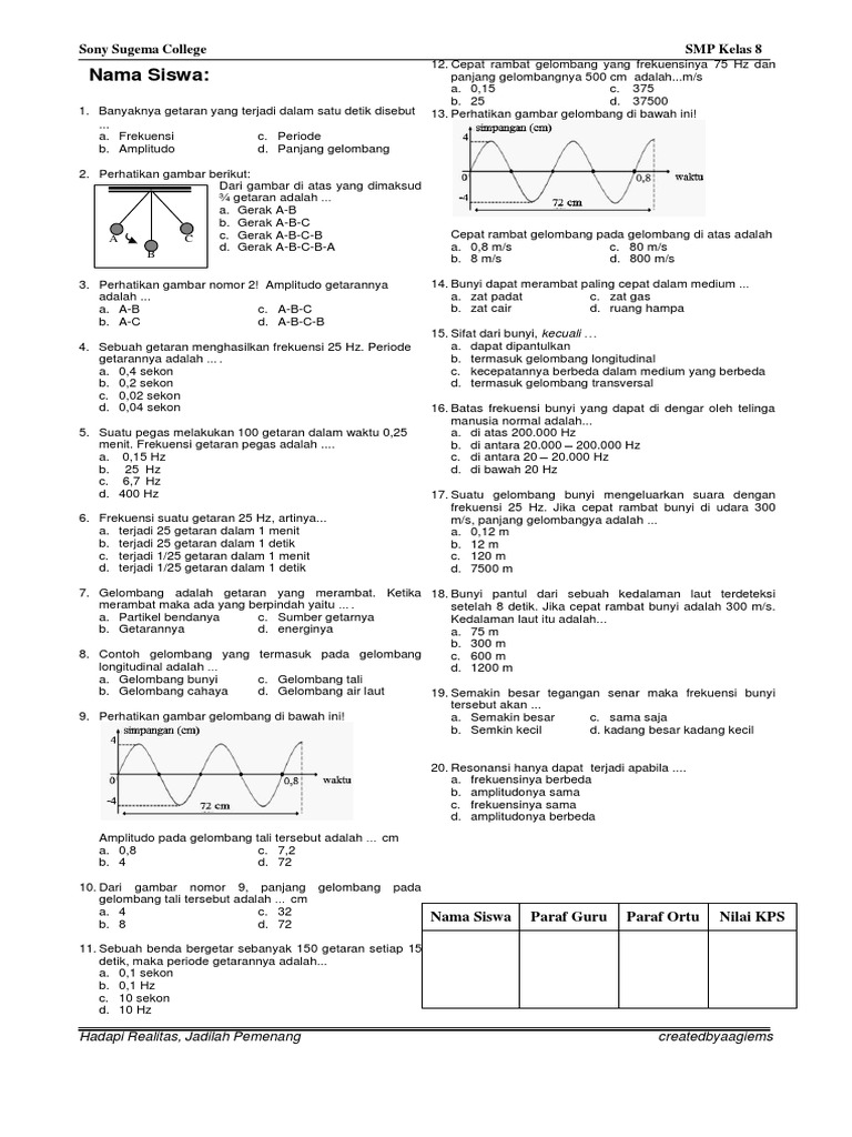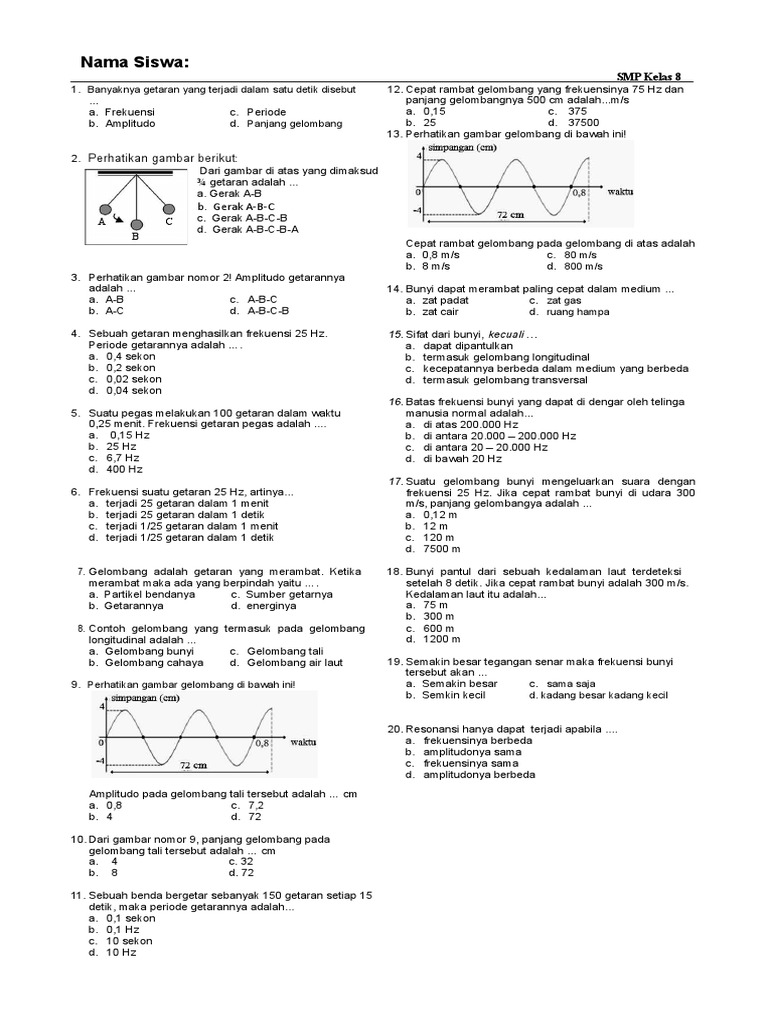 255147320 Latihan Soal Getaran Dan Gelombang Kelas 8