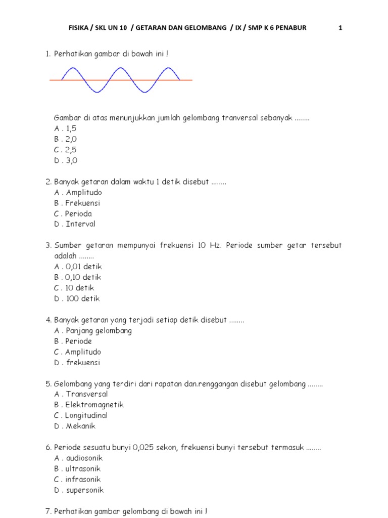 40 Soal Materi Getaran dan gelombang kelas VIII