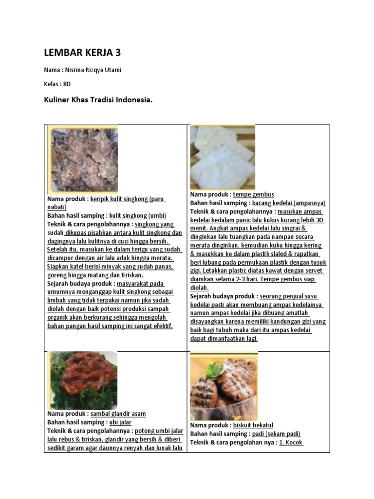 Lembar Kerja 3: Kuliner Khas Tradisi Indonesia
