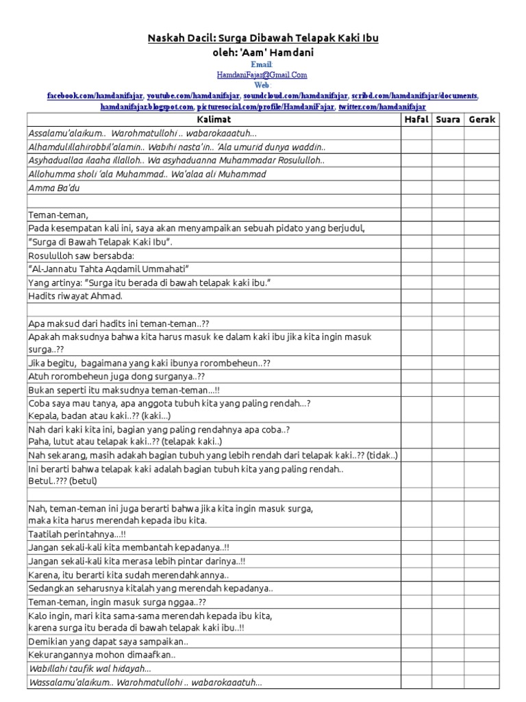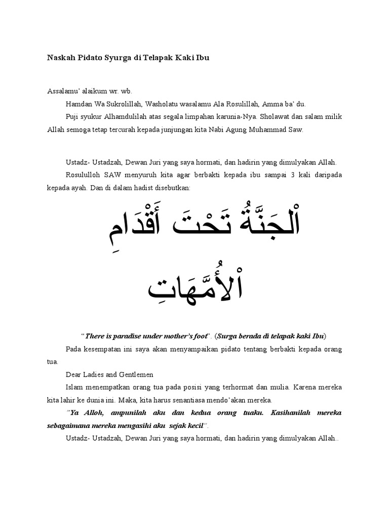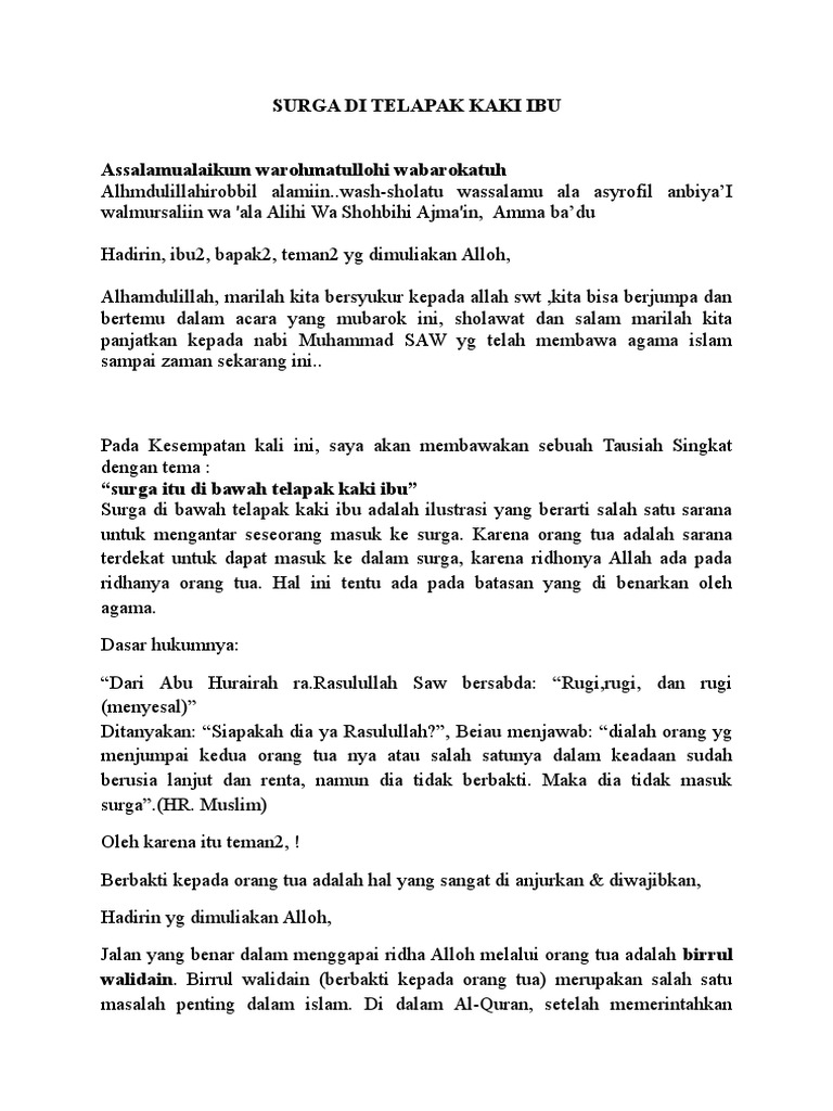 Naskah Pidato Syurga Di Telapak Kaki Ibu
