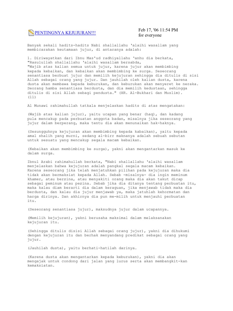 Hadits Tentang Jujur Dalam Perkataan Dan Perbuatan