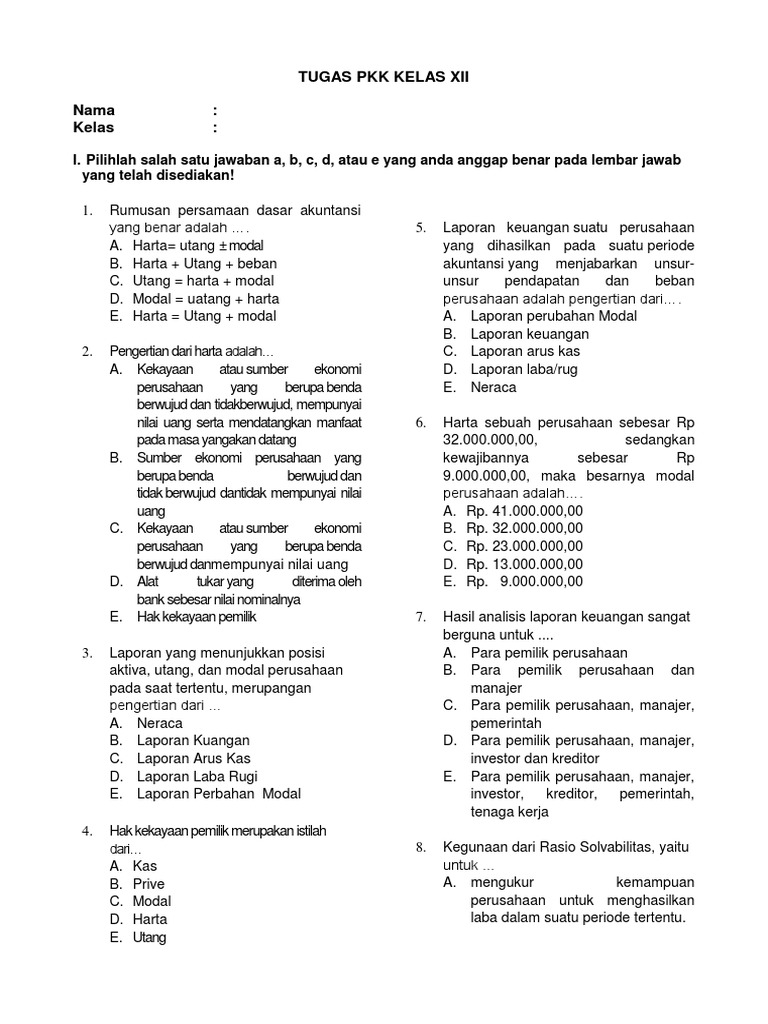 SOAL AKUNTANSI KELAS 10 IPS