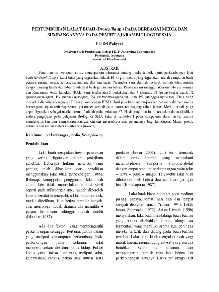 PDF) Pengaruh Suhu Terhadap Siklus Hidup Lalat Buah (Drosophila …