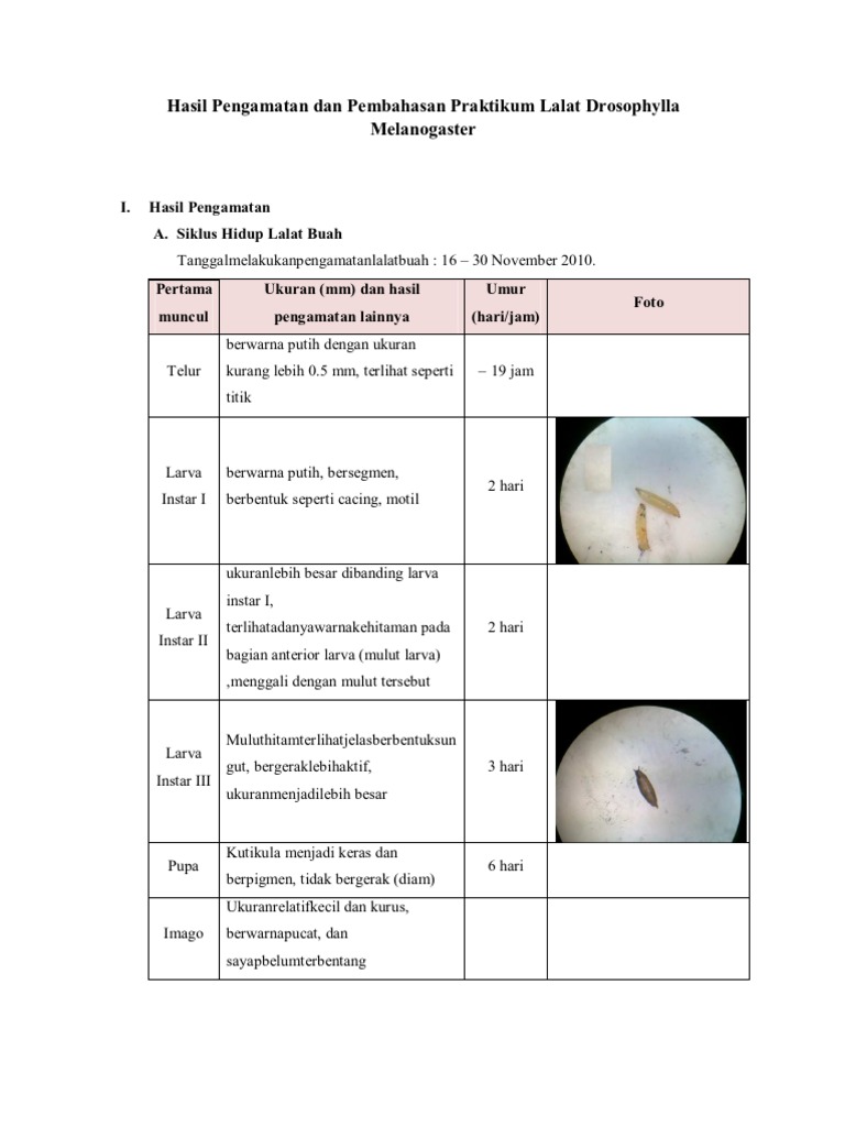 Gambar Hasil Pengamatan Pertumbuhan Dan Perkembangan Lalat Buah …