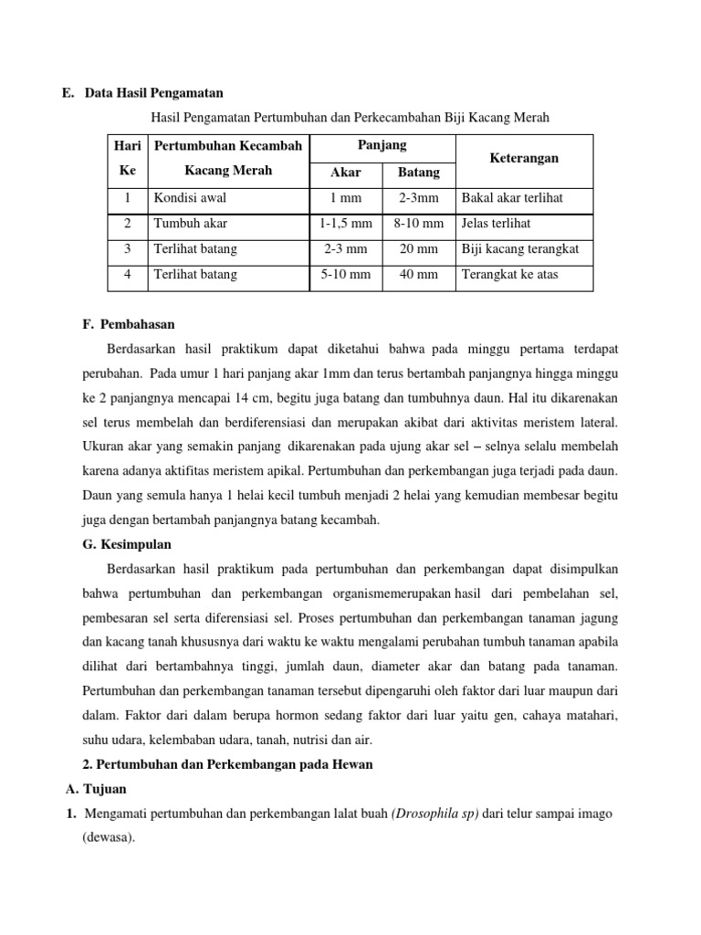 Laporan praktikum biologi Pertumbuhan dan Perkembangan