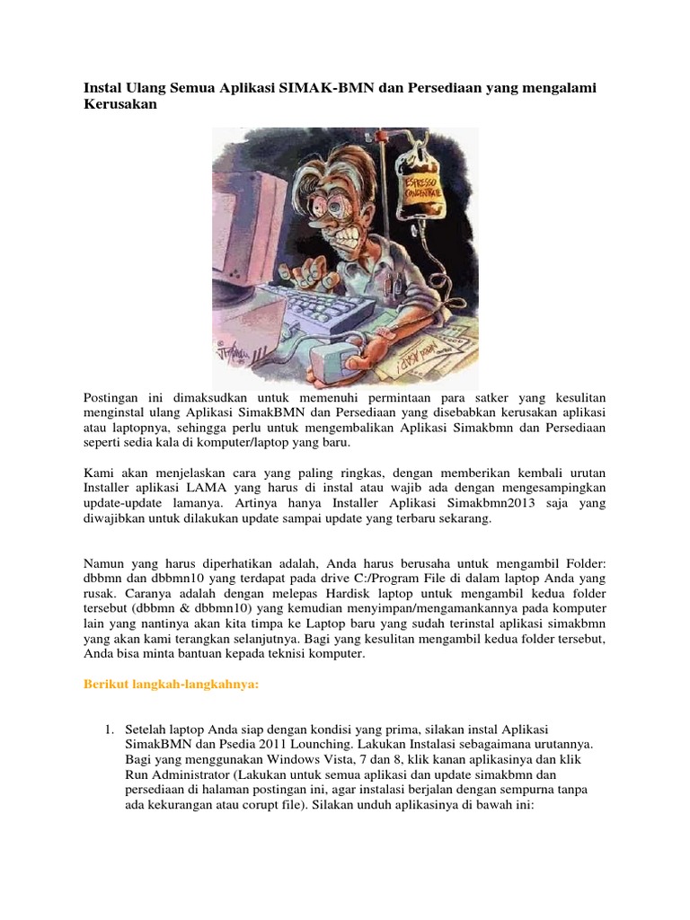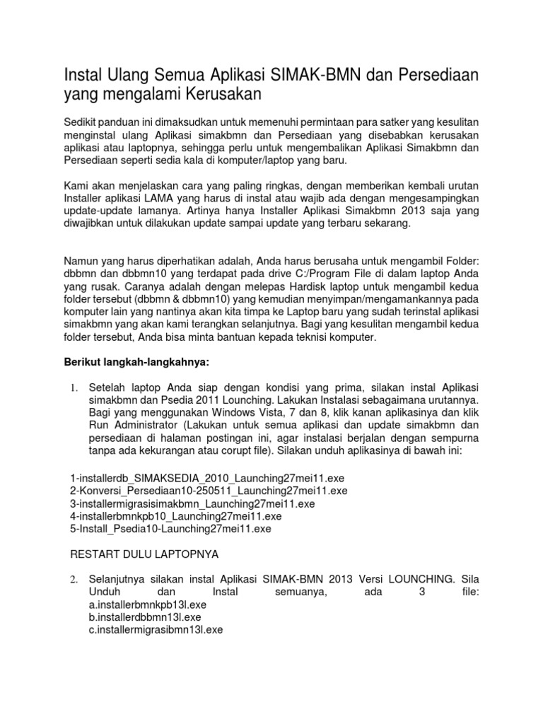 Instal Ulang Semua Aplikasi SIMAK-BMN dan Persediaan yang …