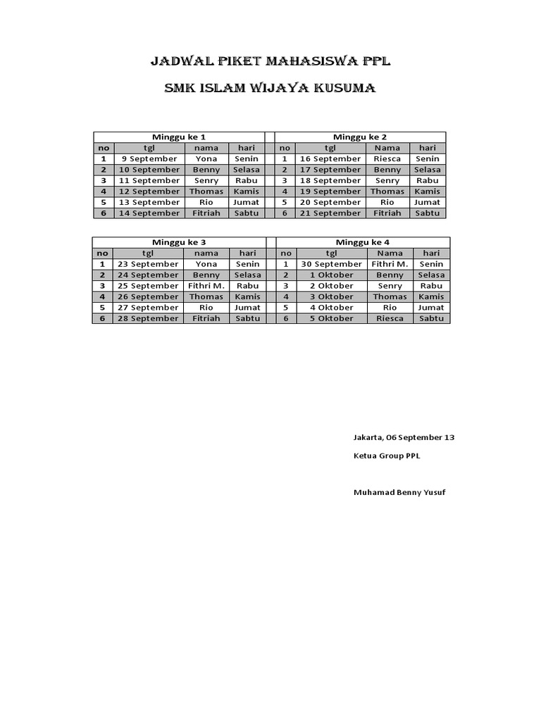 DOC) JADWAL PIKET | teddy 27 - Academia.edu