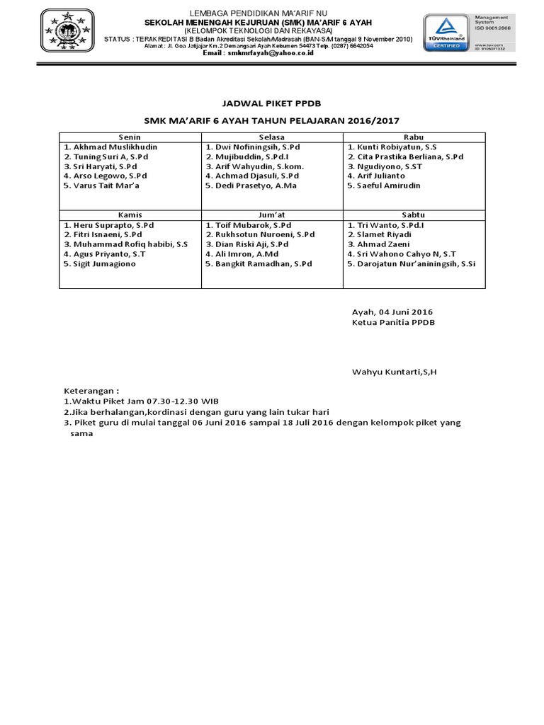 Contoh Format Pelaksanaan Jadwal Piket Harian Tahun Ajaran 2016 …