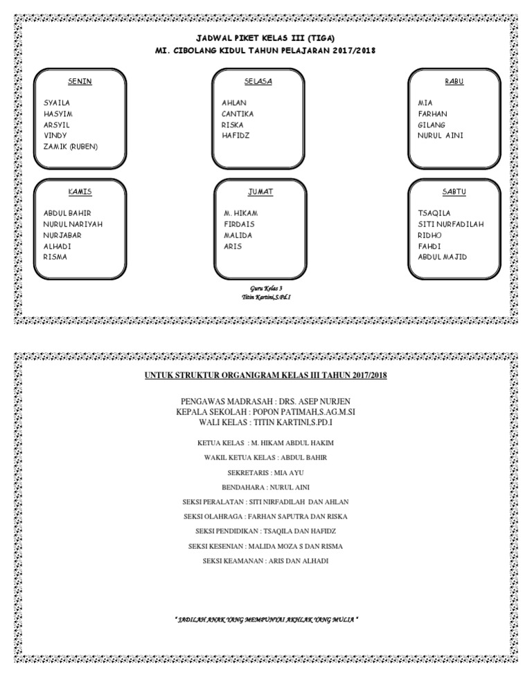 Desain Jadwal Pelajaran, Jadwal Piket Kelas dan Struktur …