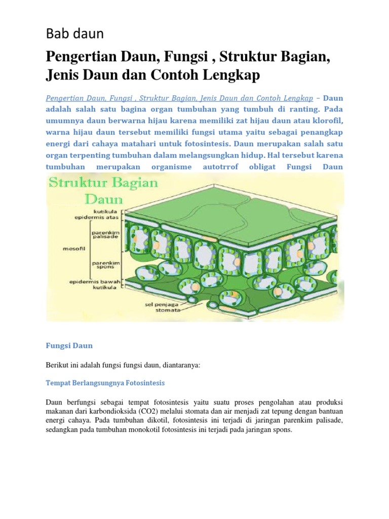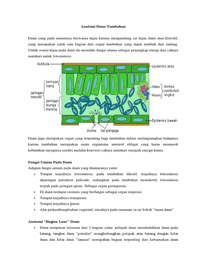 Struktur Jaringan Daun Dan Fungsinya - Berbagi Struktur