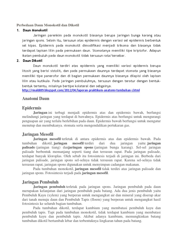 DOC) Jaringan pada daun dikotil dan monokotil | tesa manisa - Academia.edu
