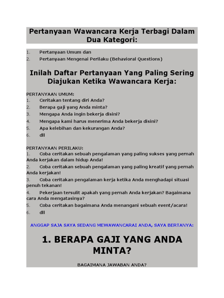 Contoh Pertanyaan Interview Atau Wawancara Beserta Cara …