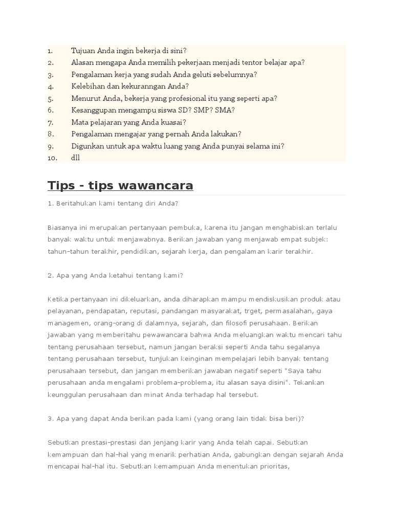 jawaban interview kenapa anda ingin bekerja disini Archives - Tips …