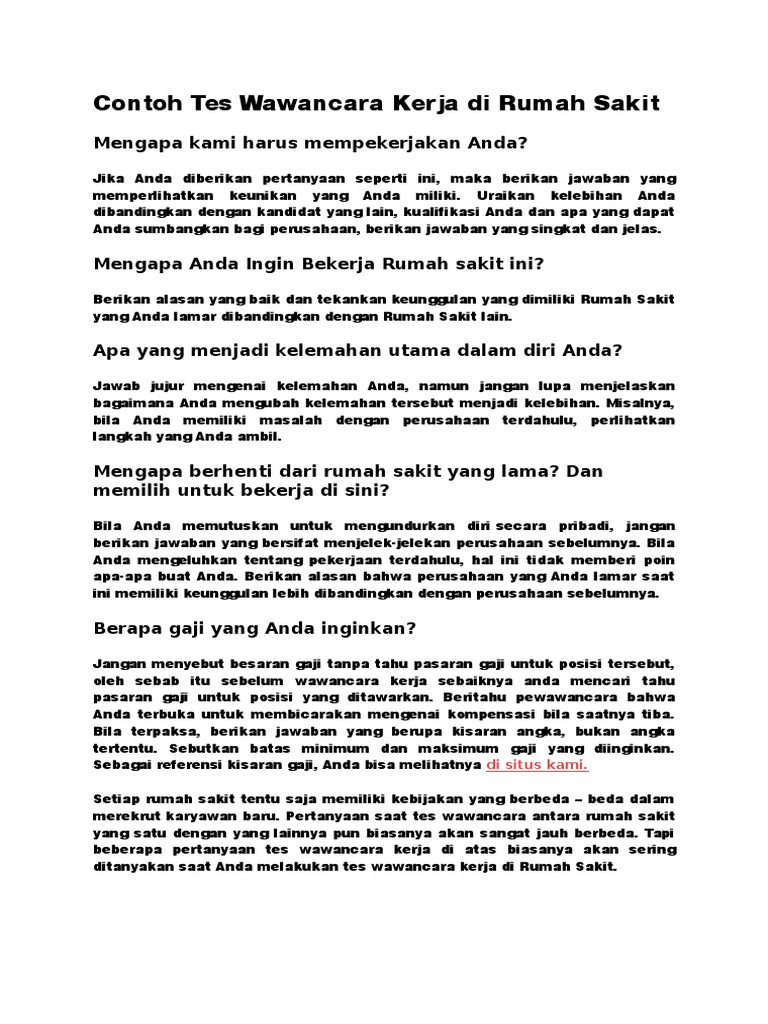 Contoh Pertanyaan Wawancara Kerja Di Rumah Sakit