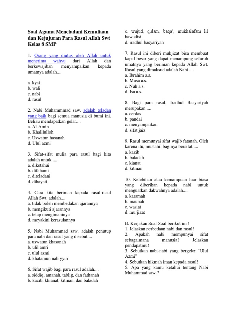 Soal Agama Kelas 8 SMP