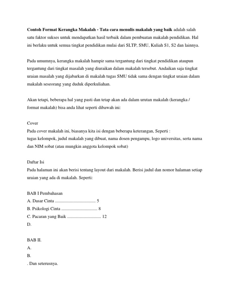 Contoh Format Kerangka Makalah