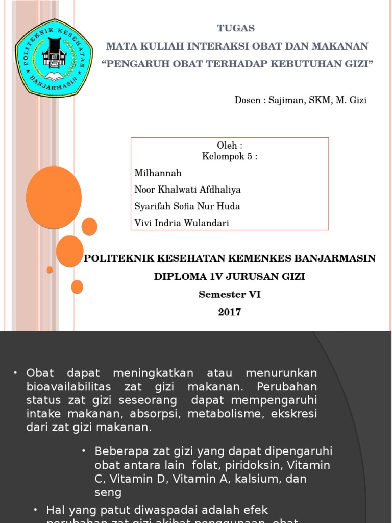 5. Pengaruh Obat Terhadap Kebutuhan Zat Gizi