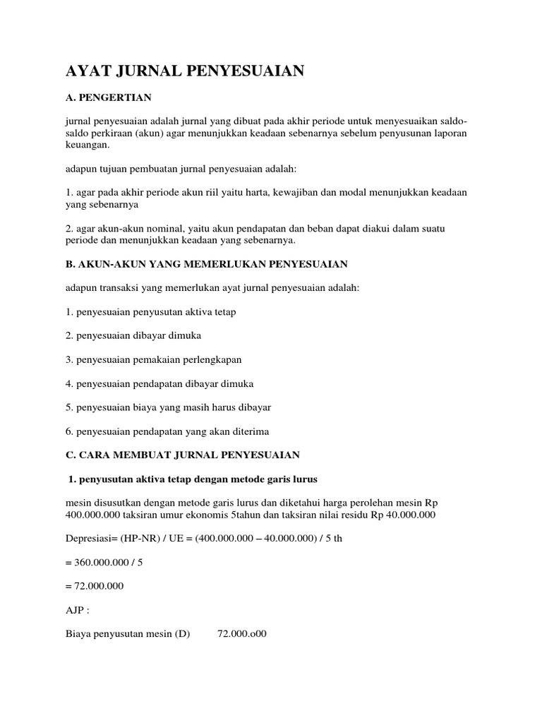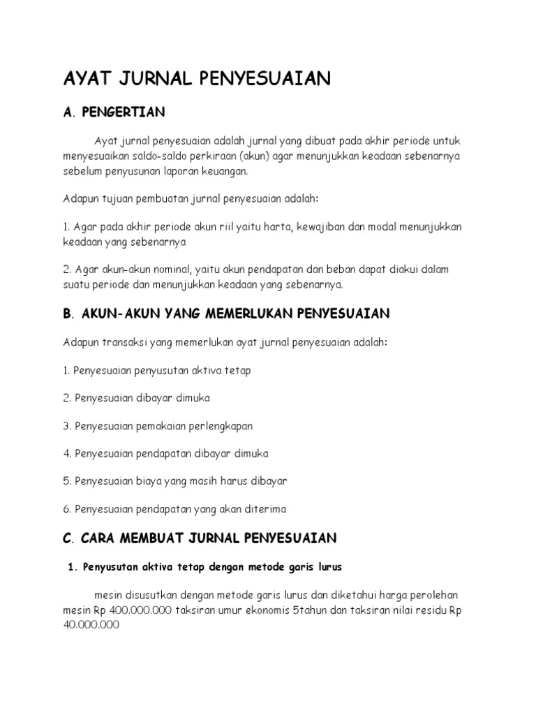 Ayat Jurnal Penyesuaian: A. Pengertian