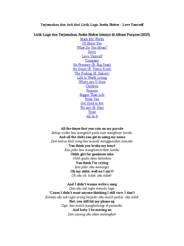 Lirik lagu justin bieber dan terjemahannya love yourself …
