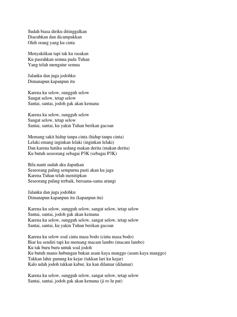 Ruang Belajar siswa kelas 4: Lirik Lagu Karna Ku Selow