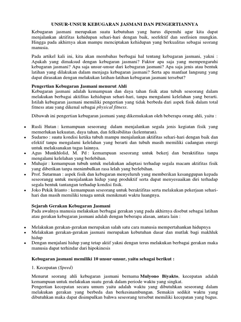 10 Unsur / Komponen Kesegaran Jasmani Oleh Beberapa Ahli Lengkap …