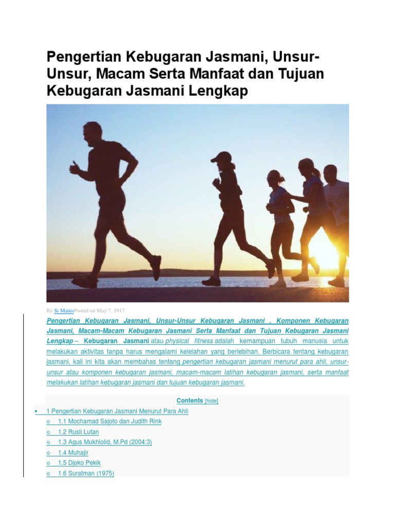 Kebugaran Jasmani, Pengertian dan Komponen serta Unsur - Unsur …