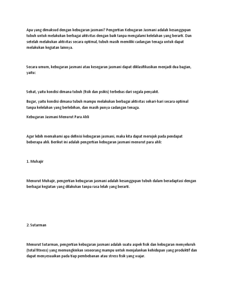 jelaskan pengertian kebugaran jasmani menurut para ahli - Brainly …